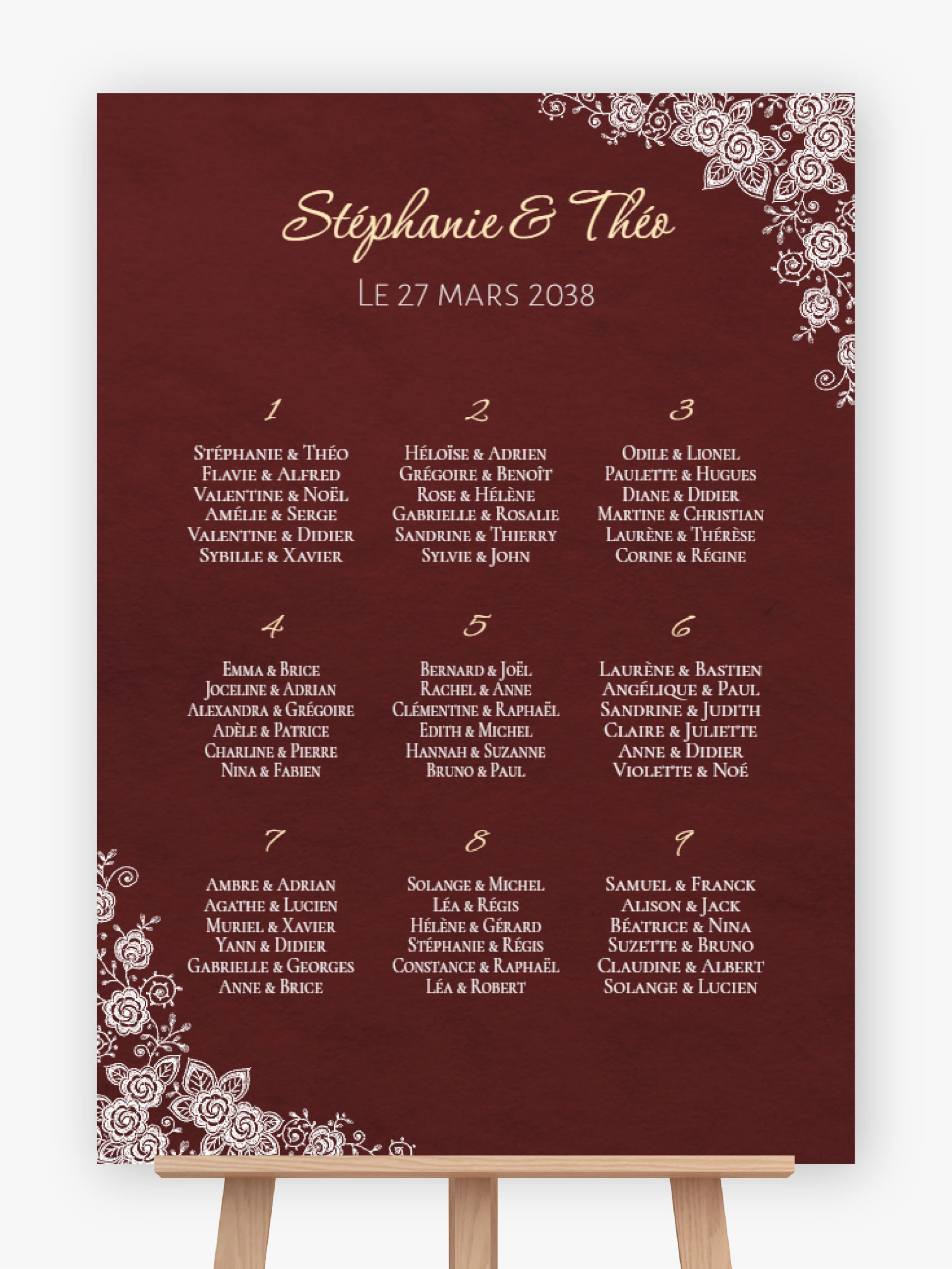 Six supports vous sont proposés pour imprimer votre plan de table mariage :